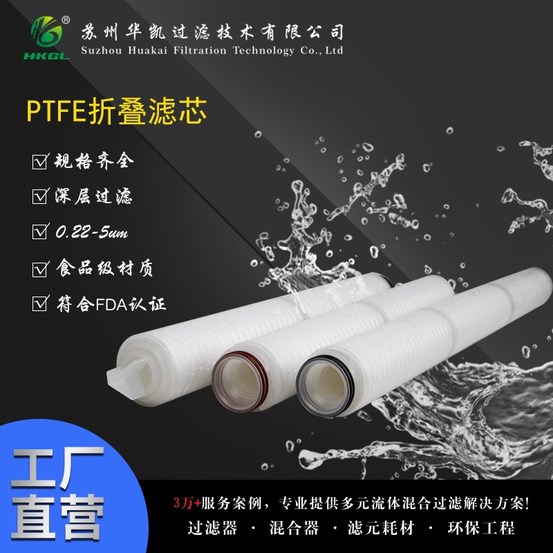 聚四氟乙烯濾芯,其過濾介質(zhì)為親水性及疏水性聚四氟乙烯(PTFE) 微孔濾膜,聚四氟乙烯濾芯 工作性能特佳,生物安全性及熱原控制指標符合美國藥典(USP) 要求,出廠前每支濾芯都100%經(jīng) 過氣泡點及擴散流等完整性測試,以保證達到美國 HIMA的細菌截住留試驗要求。折疊PTFE 疏水 濾芯系列采用疏水聚四氟乙烯(PTFE) 濾膜制成,具有優(yōu)異的化學相容性和耐腐蝕能力,可用于強腐 蝕性、強氧化性液體的過濾和氣體過濾。