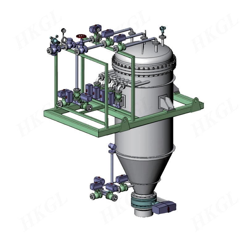 濾餅層,直至使濾餅達到所需的干度后再使機內泄壓,并反吹濾餅從底部卸料。