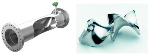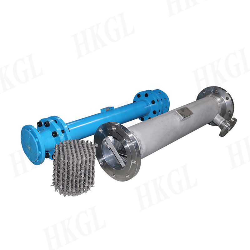 HK-SK靜態混合器單元由單孔道左右按角度旋轉組焊而成,安裝入管時相鄰的螺旋片分別右旋。SK型混合器不容易堵塞,適合于粘度較大的物料,處理量大。分化過程時能使液滴分散到10um。