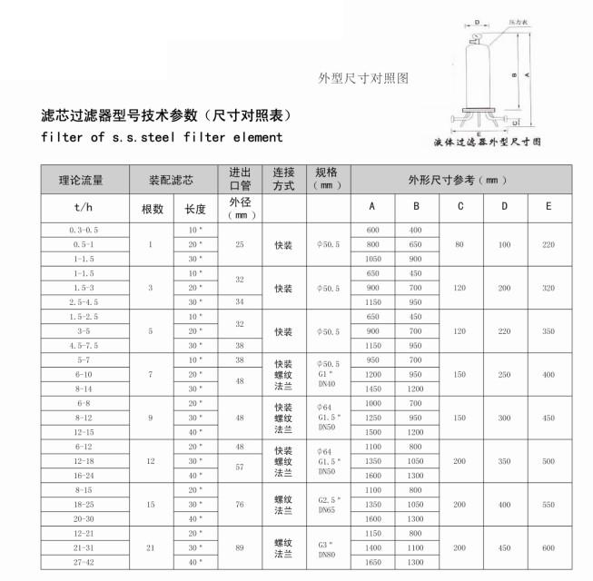 各種濾芯的特點及應用 :聚四氟乙烯膜(PTFE)濾芯,聚硐膜(HE)濾芯,聚丙烯膜(PP)濾芯,醋酸纖維膜(CN-CA)濾芯, 過濾精度從0.1-60um,長度有10、20、30和40英寸(即250、500、750、1000mm)四種, 上述濾芯,耐壓為0.42mpa,可反沖。接口方式有插入式(222、226座二種)和平嘴式兩種。