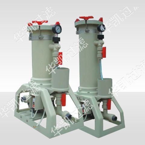 5、加助濾劑或活性炭的操作:過濾機正常工作時擰松放氣閥將藥液引入引水筒,藥液達到引水筒的三分之二以上,關掉放氣閥門,向引水筒內放入活性炭或助濾劑進行攪拌,再打開引水筒底下的引水閥,使藥液流入泵腔,這樣連續多次循環操作,使濾芯表面形成一層過濾膜,然后正常過濾,即可使藥液達到理想的效果。