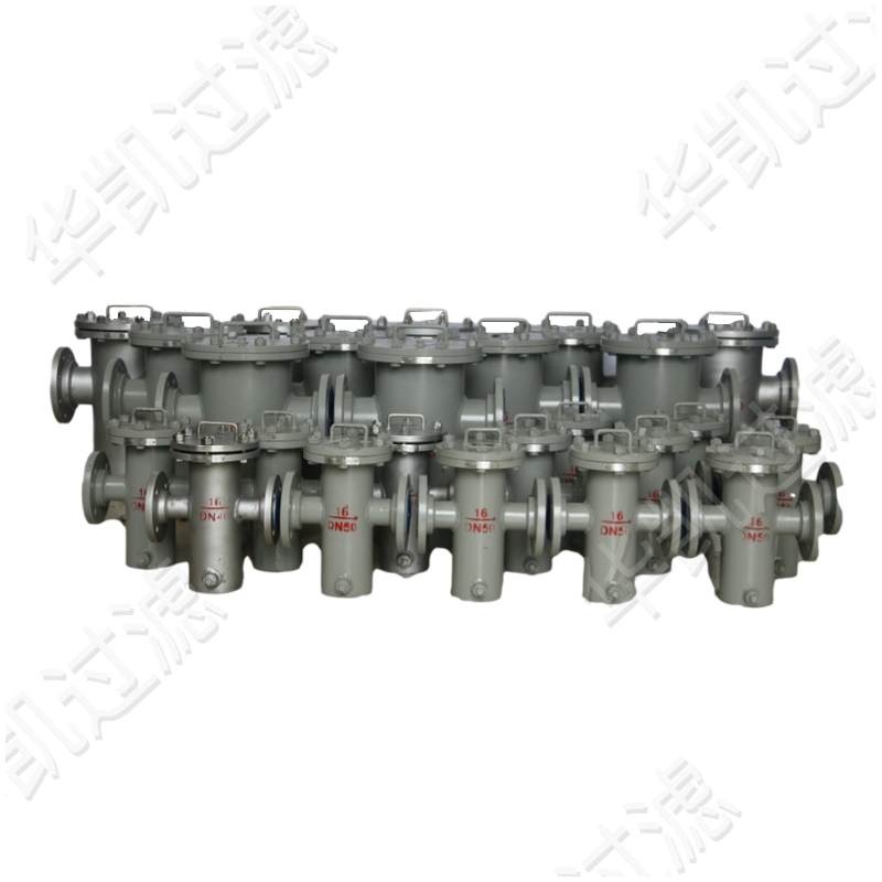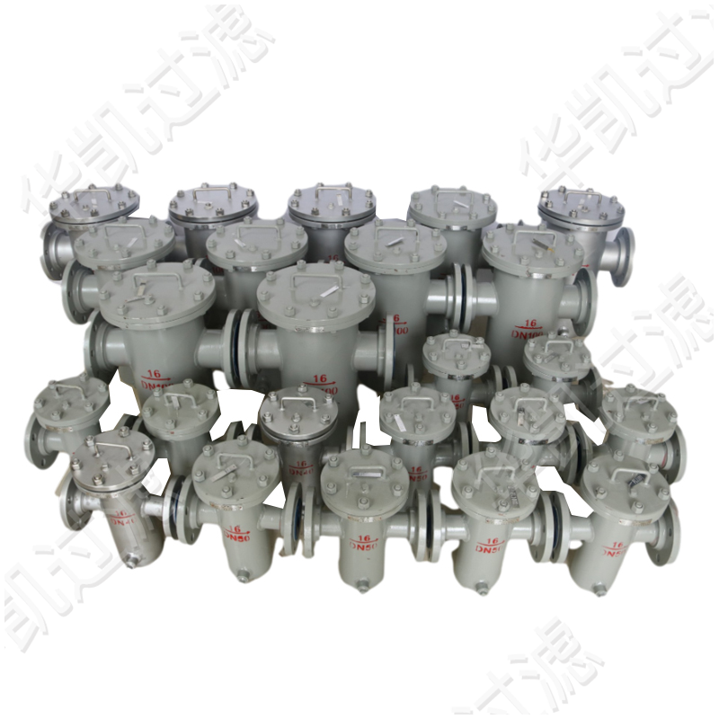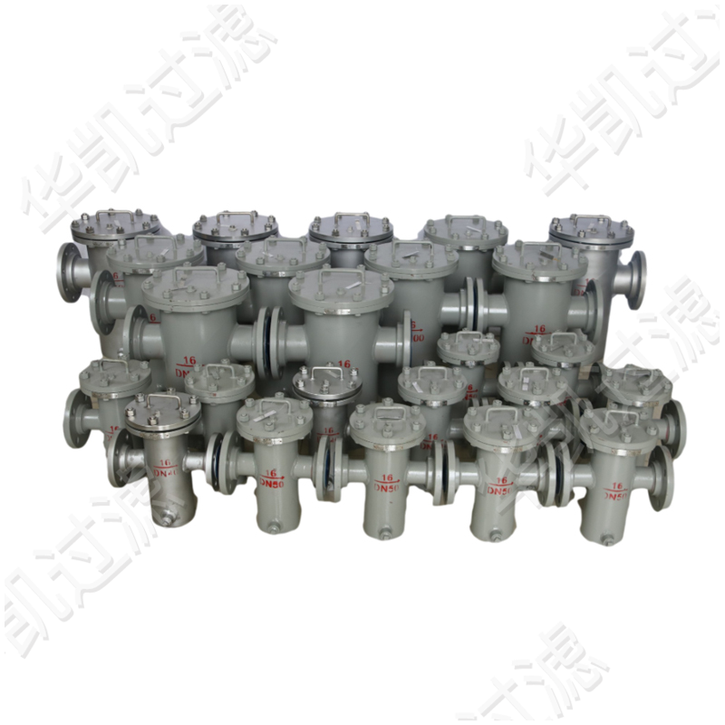 籃式過濾器主要由接管、主管、濾籃、法蘭、法蘭蓋及緊固件等組成。當液體通過主管進入濾籃后,固體雜質顆粒被阻擋在濾籃內,而潔凈的流體通過濾籃、由過濾器出口排出。當需要清洗時,旋開主管底部螺塞,排凈流體,拆卸法蘭蓋,清洗后重新裝入即 可。因此,使用維護方便。本廠的籃式過濾器可以根據客戶的實際使用情況進行設計。